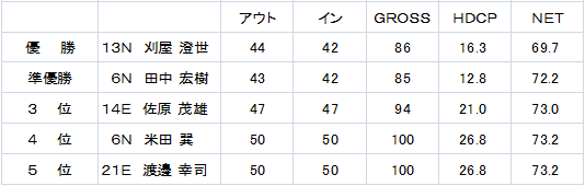 ベスグロは16Nの森口俊樹さんで、アウト43、イン39、グロス82の見事な成績でした。