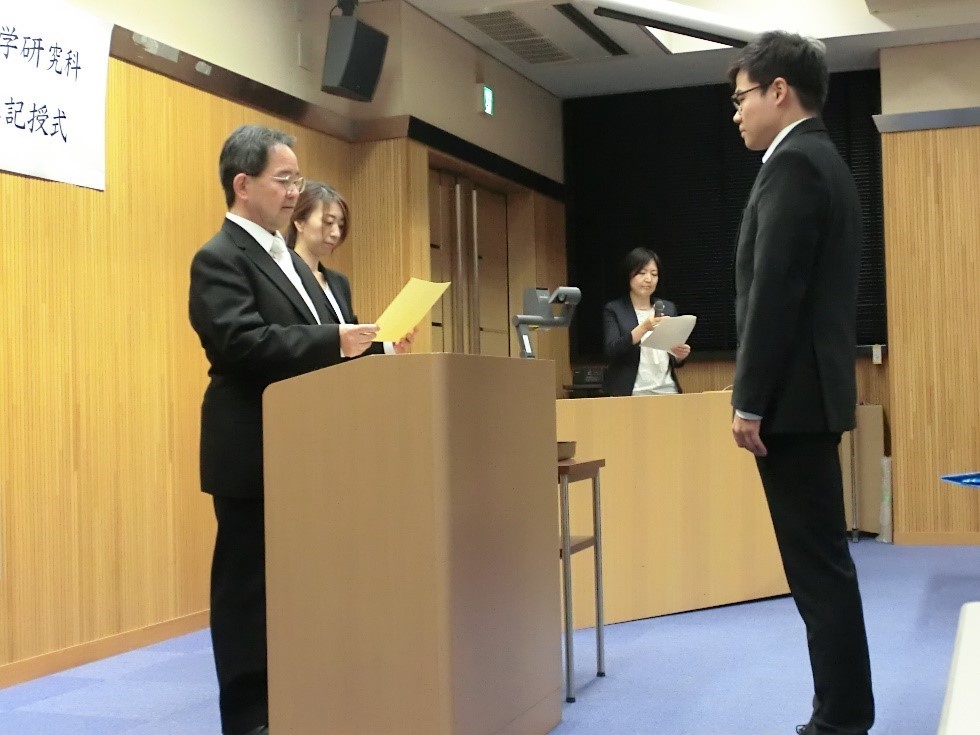 また、同日10時00分より、六甲台において海事科学研究科博士後期課程学位記授与式が