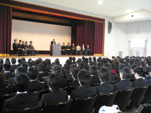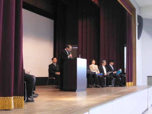学内講堂では小田科学研究科長のお祝いの言葉と