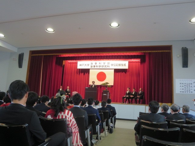 神戸大学海事科学部、大学院海事研究科と博士課程前期の卒業生・修了者の学位記授与式が