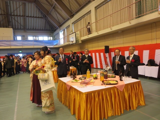 4)引き続き、場所を体育館に移し、来賓、父兄、卒業生との祝賀会が行われました。