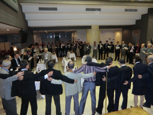 中締めの前に8期機関学科村田さん指導に依る「進徳丸の船歌」「練習船の歌」