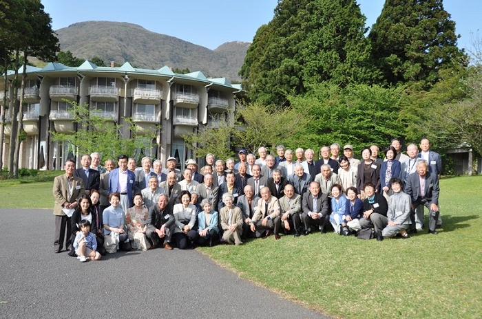 午後三時の集合、部屋割り、宴席のクジ引き等をして午後四時ホテル芦ノ湖側庭に集まり、記念撮影を行う。