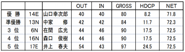 ベスグロは12Eの高尾吉宗さんで、アウト40、イン39、グロス79の見事な成績でした。