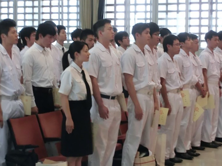 航海課程32名と機関課程13名の修了生45名には一人一人、