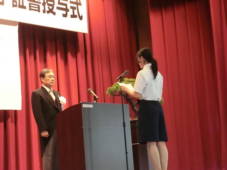 修了生代表 佐藤 更学生の挨拶で修了証書授与式は無事終了