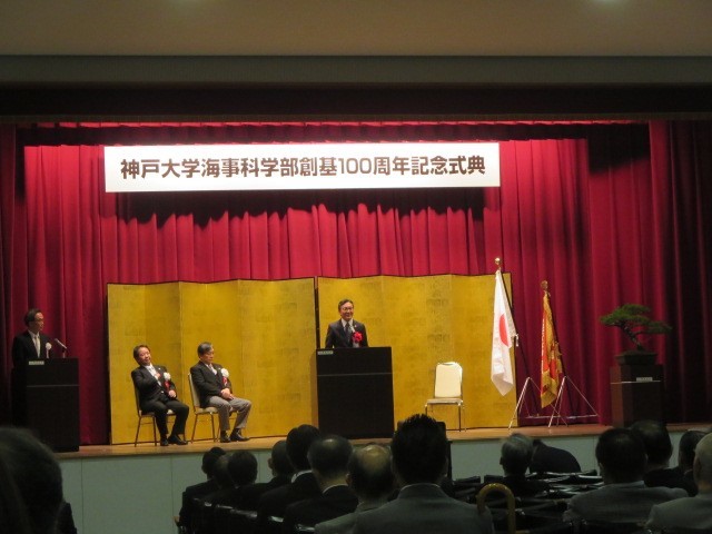 深江キャンパスでは、午後から海事科学部創基100周年記念式典を中心に併催企画として海神会の評議会が開催されました。