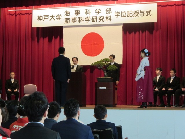 神戸大学海事科学部、大学院海事研究科と博士課程前期の卒業生・修了者の学位記授与式が