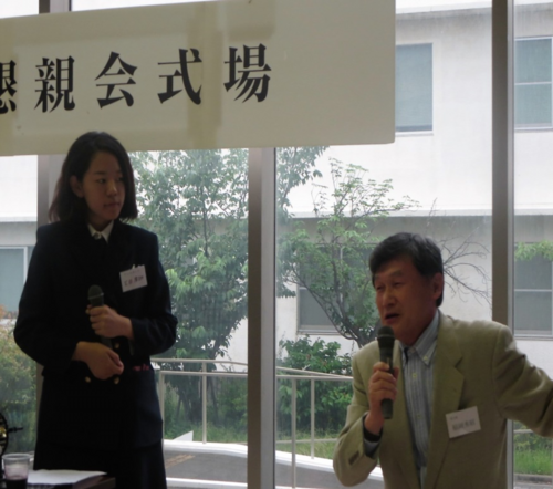 2.司会の赤坂柚子、芝田摩琳学生よりにより乾杯。