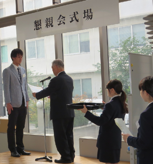既に、両氏は今年度より就職され実務中ですが、石川氏が両氏を代表して出席され海神会賞を授与しました。
