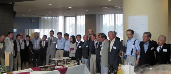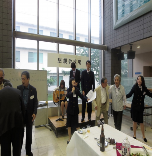 寮歌を参加者全員で肩を組み、斉唱・熱唱した。
