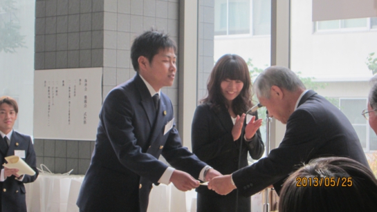 チームを代表して山本君が会長より表彰状を受け、上野真奈さんが副賞を