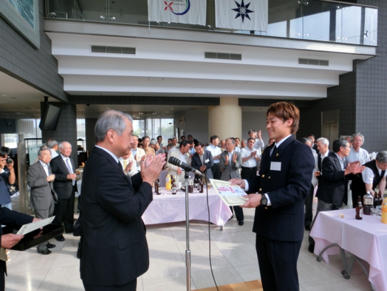 今年度の海神会賞受賞者が久保新会長より表彰され、副賞を添えて皆様方に紹介されました。